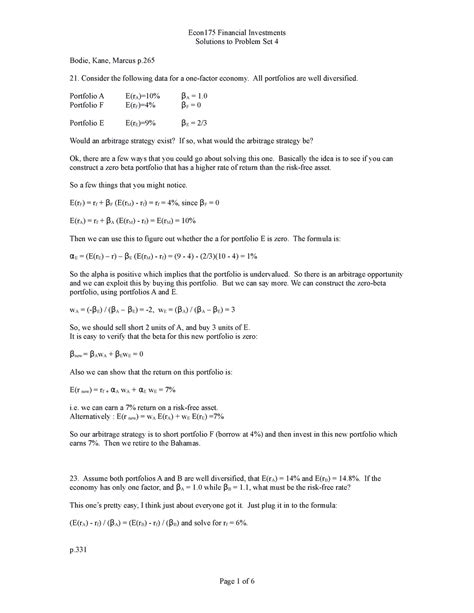 Free PDF PROBLEM SET SOLUTIONS FOR BODIE KANE MARCUS PDF Nook BookBoon