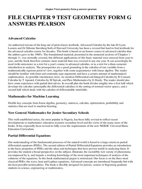 Read Online chapter 9 test geometry form g answers pearson mobipocket